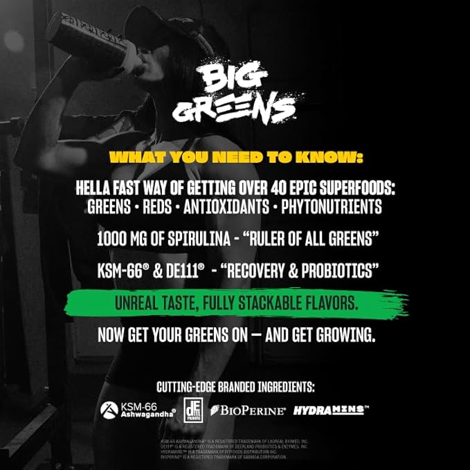 Mutant Big Greens | Green Supplement | Over 40 superfoods Land & Sea Greens – Reds, Antioxidants, phytonutrients, 1000mg spirulina – Pre & Probiotic Blend | 30 Serving – Just Chocolate